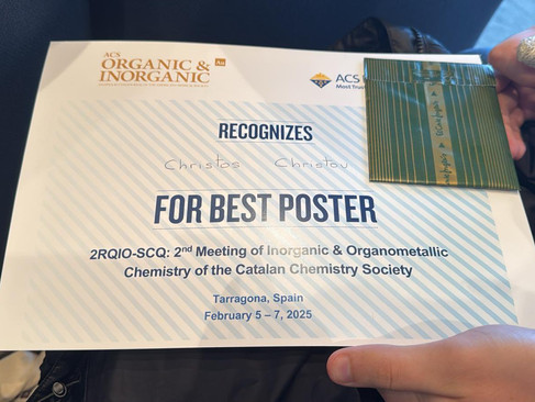 First of all, Christos Christou, PhD student in our group under the supervision of Prof. Miquel Costas, presented his work "Supramolecularly directed enantioselective g-lactonization of carboxylic acids using bioinspired manganese catalysts" and was awarded with a best poster award. Congratulations Christos!